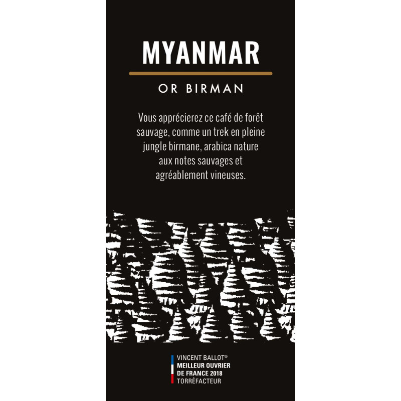 Vous apprécierez ce café de forêt sauvage, comme un trek en pleine jungle birmane, arabica nature aux notes sauvages et agréablement vineuses.