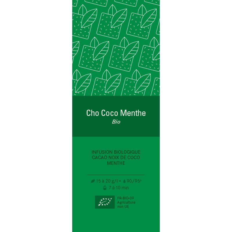 Etiquette repositionnable personnalisée Cho Coco Menthe BIO conçue pour votre rayon infusions thés laGrange.