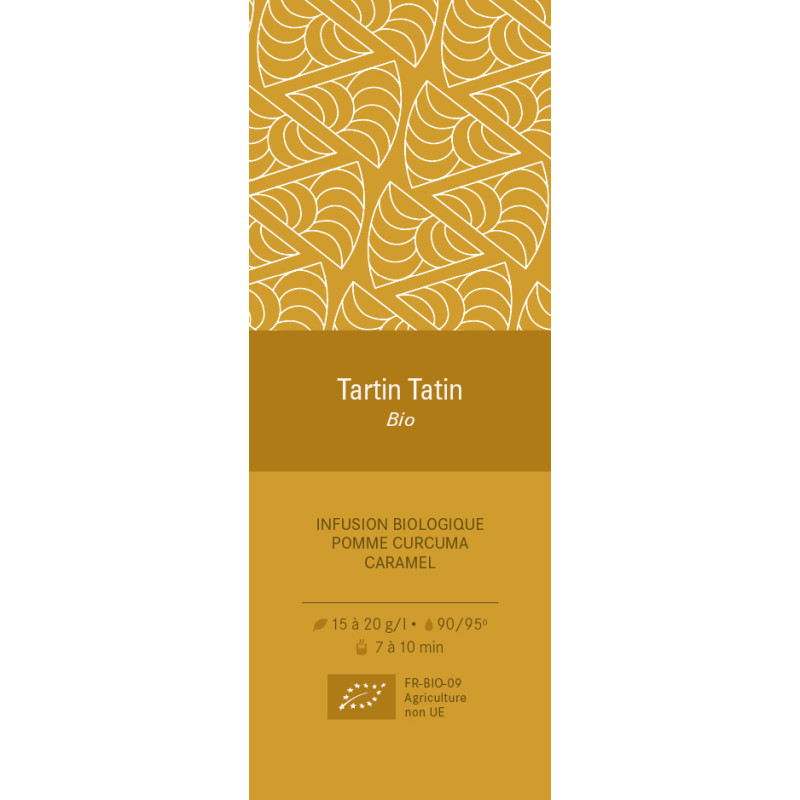 Etiquette repositionnable personnalisée Tarte Tatin BIO conçue pour votre rayon infusions thés laGrange.