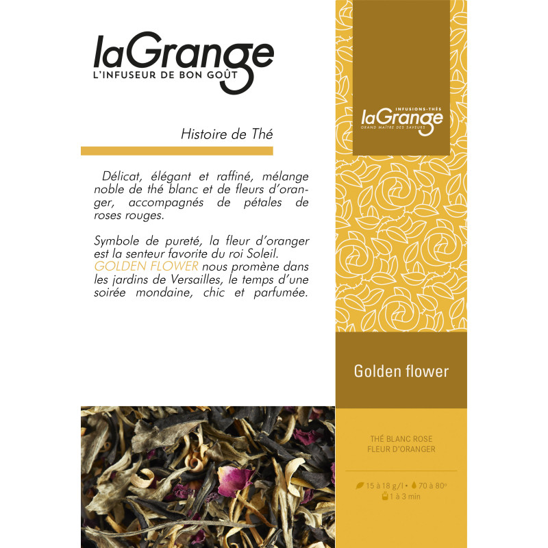 Golden flower- Thé blanc, pétale de rose, fleur d'oranger et arôme- 1kg 20 sachets barrettes personnalisés - vendu au 50g